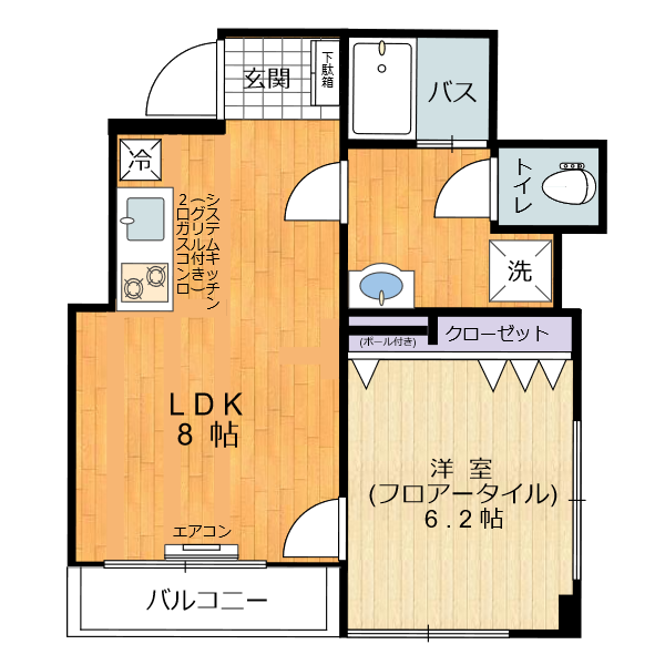 | 設備・条件 | 角部屋 ガスコンロ 二口コンロ システムキッチン 給湯 洗髪洗面化粧台 シャワー バス・トイレ別 エアコン トランクルーム 室内洗濯機置き場 光ファイバー 都市ガス エレベータ バルコニー フローリング | ||